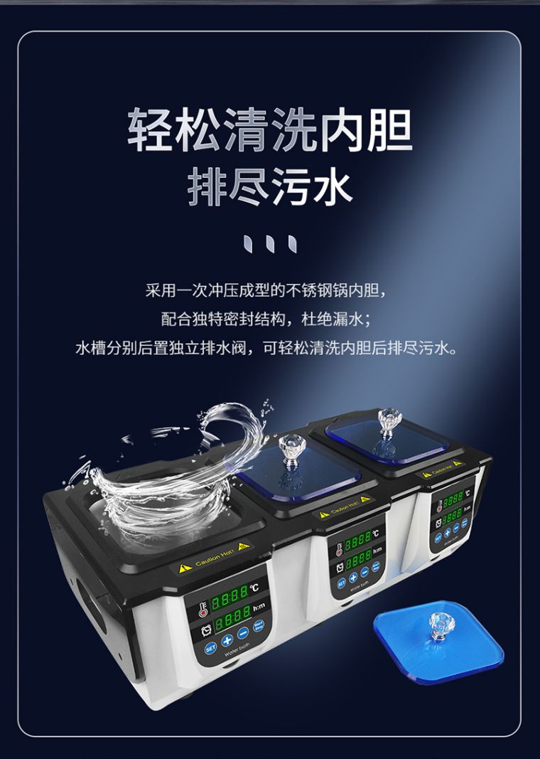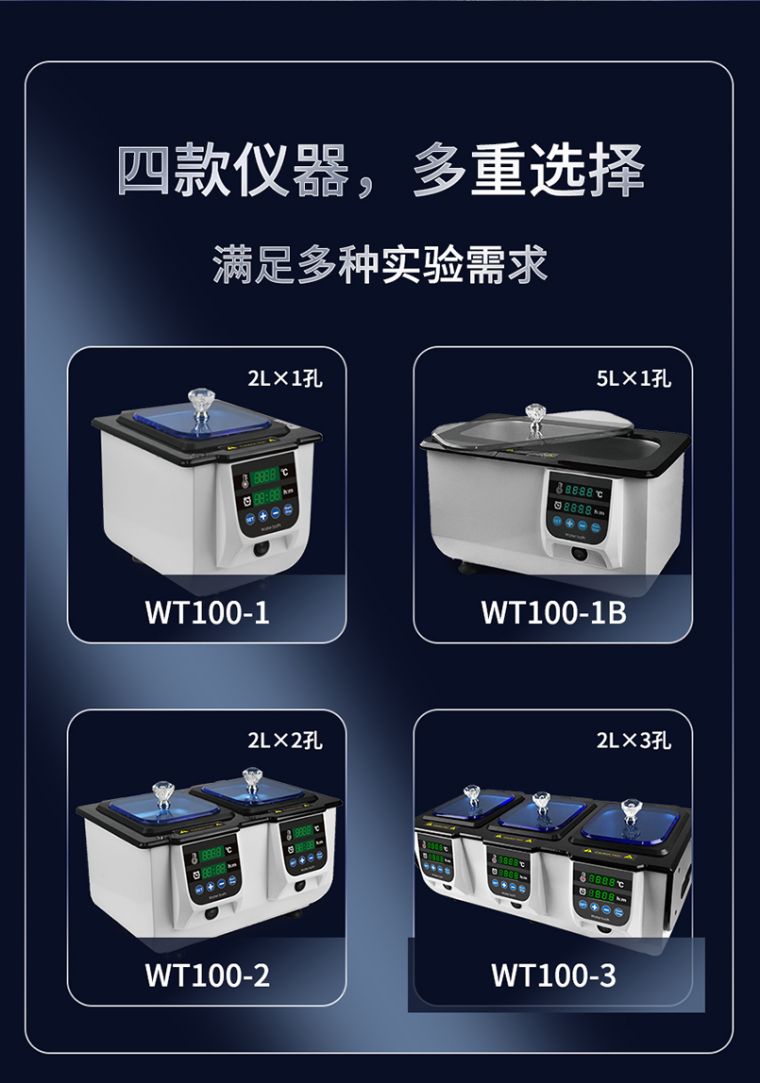 WT100-1B 恒温水浴槽是一款温度可控的恒温水浴槽生化仪器,主要适用于各大中院校、工矿企业和科研单位等作生物、生化、细胞、菌种等各种液态、固态化合物的培养,是植物、动物、微生物、遗传病毒、医学、环保等科研、教育和生产部门作紧密培养制备不可缺少的实验室设备。
