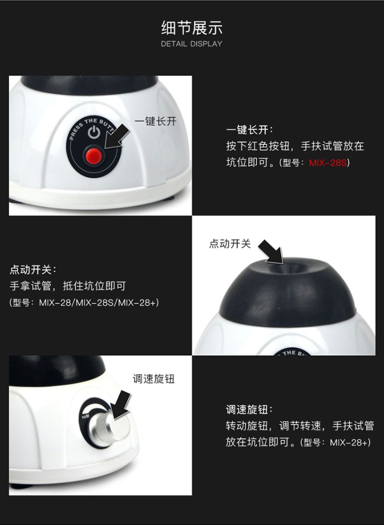 MIX-28S 点动小精灵是专注点动功能的试管振荡器。紧凑小巧的设计爱不释手,触发式启动开关安全便捷,使其成为实验室必不可少的工具之一。