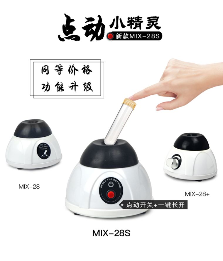 MIX-28 点动小精灵是专注点动功能的试管振荡器。紧凑小巧的设计爱不释手,触发式启动开关安全便捷,使其成为实验室必不可少的工具之一。
