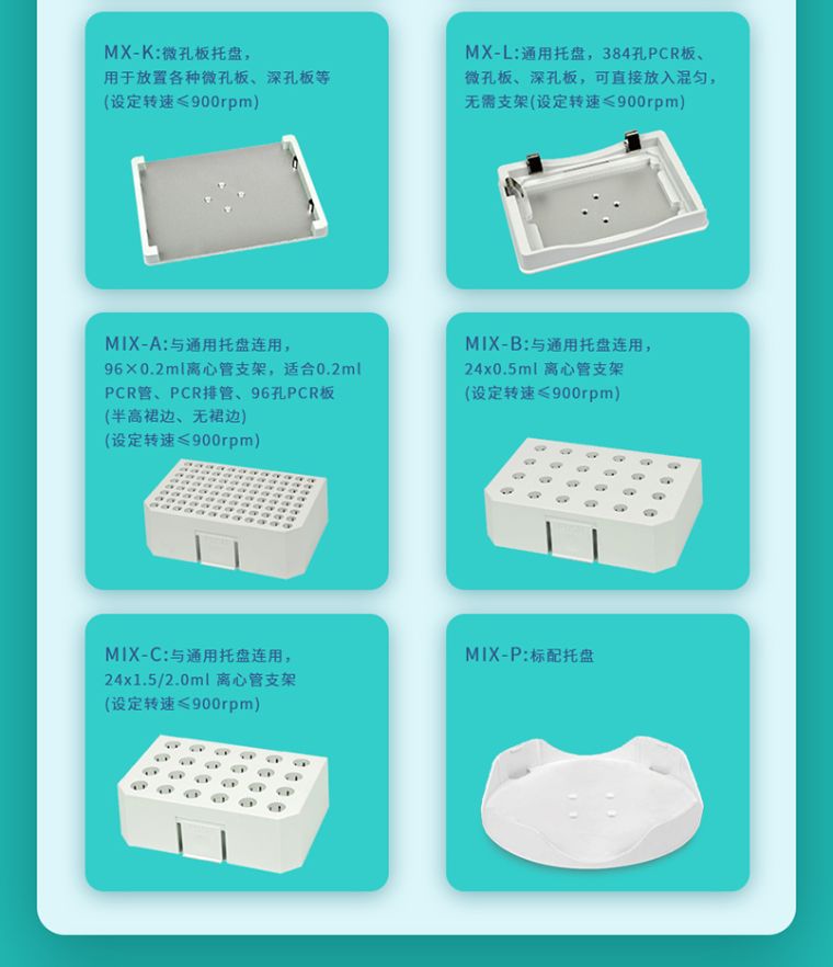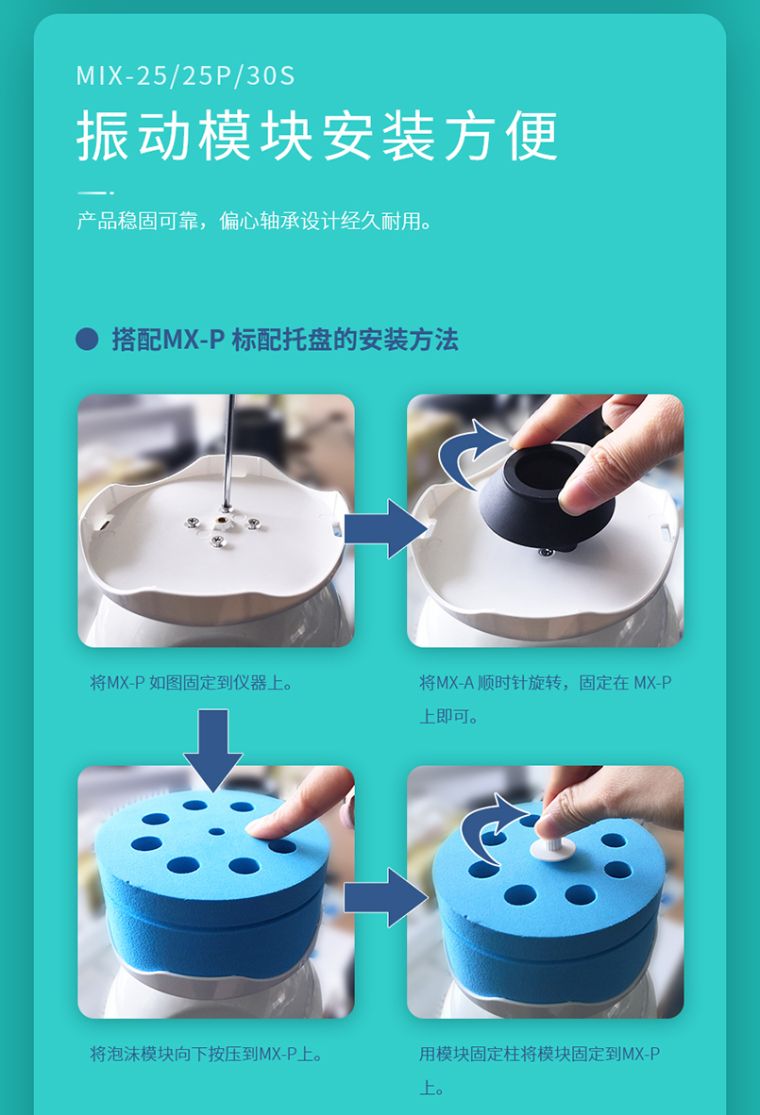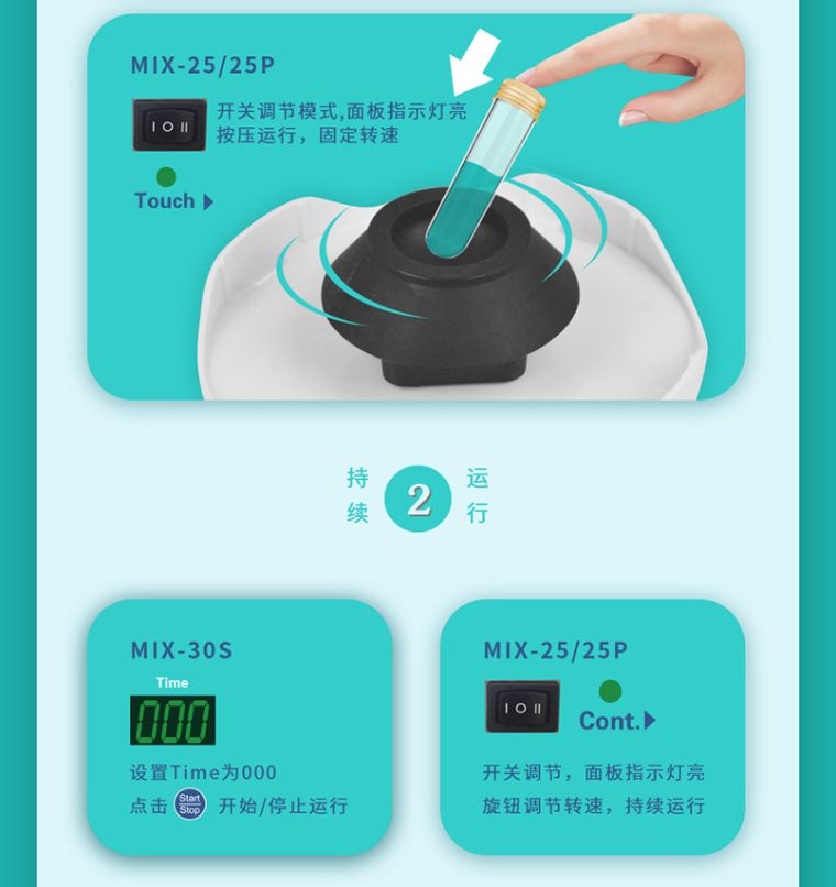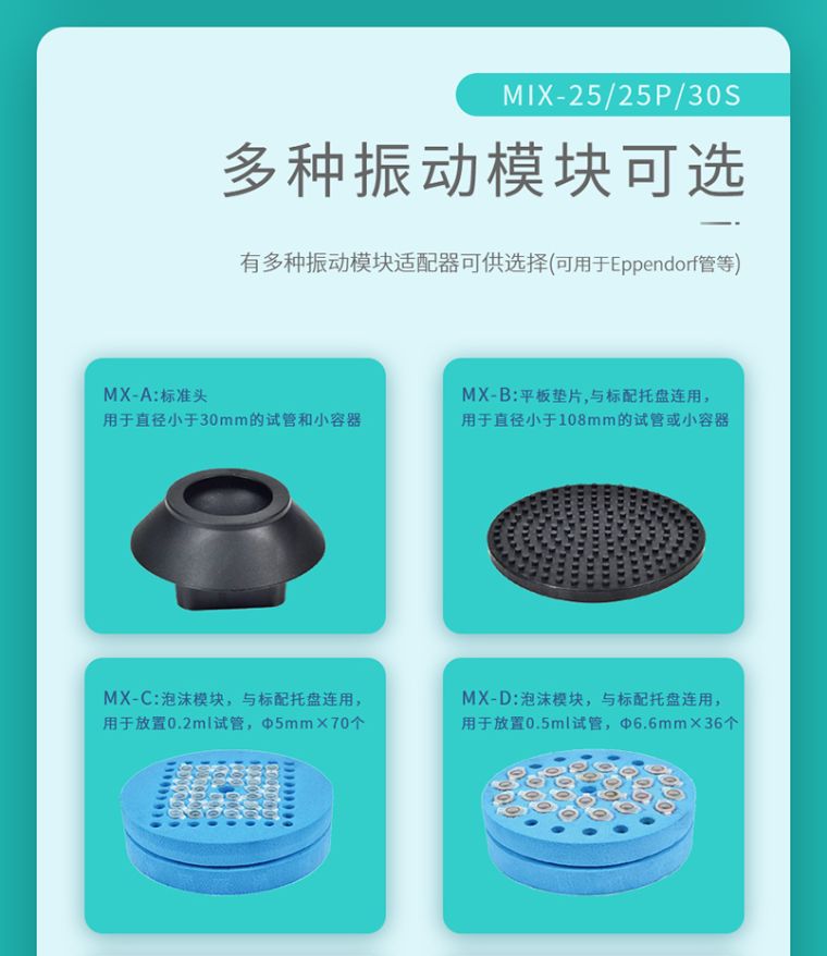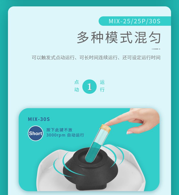MIX-30S 迷你混合仪应用于生命科学和理化分析领域,用于样品组织、细胞、菌液、化学试剂等的振荡、混匀和搅拌工作。多种适配器可适用0.2~50ml微量管和直径小于108mm的试管或小容器。