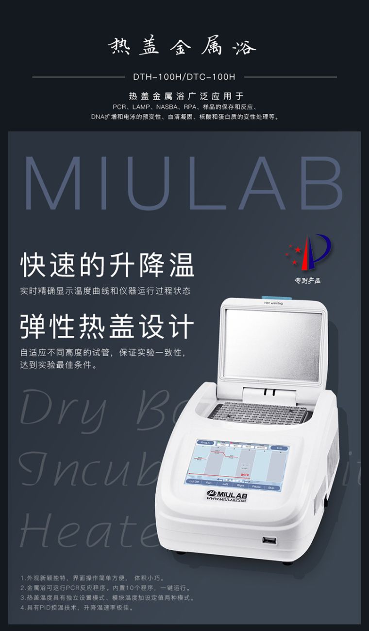 热盖金属浴可广泛应用于PCR、LAMP、NASBA、RPA、样品的保存和反应、DNA扩增和电泳的预变性、血清凝固、核酸和蛋白质的变性处理等。