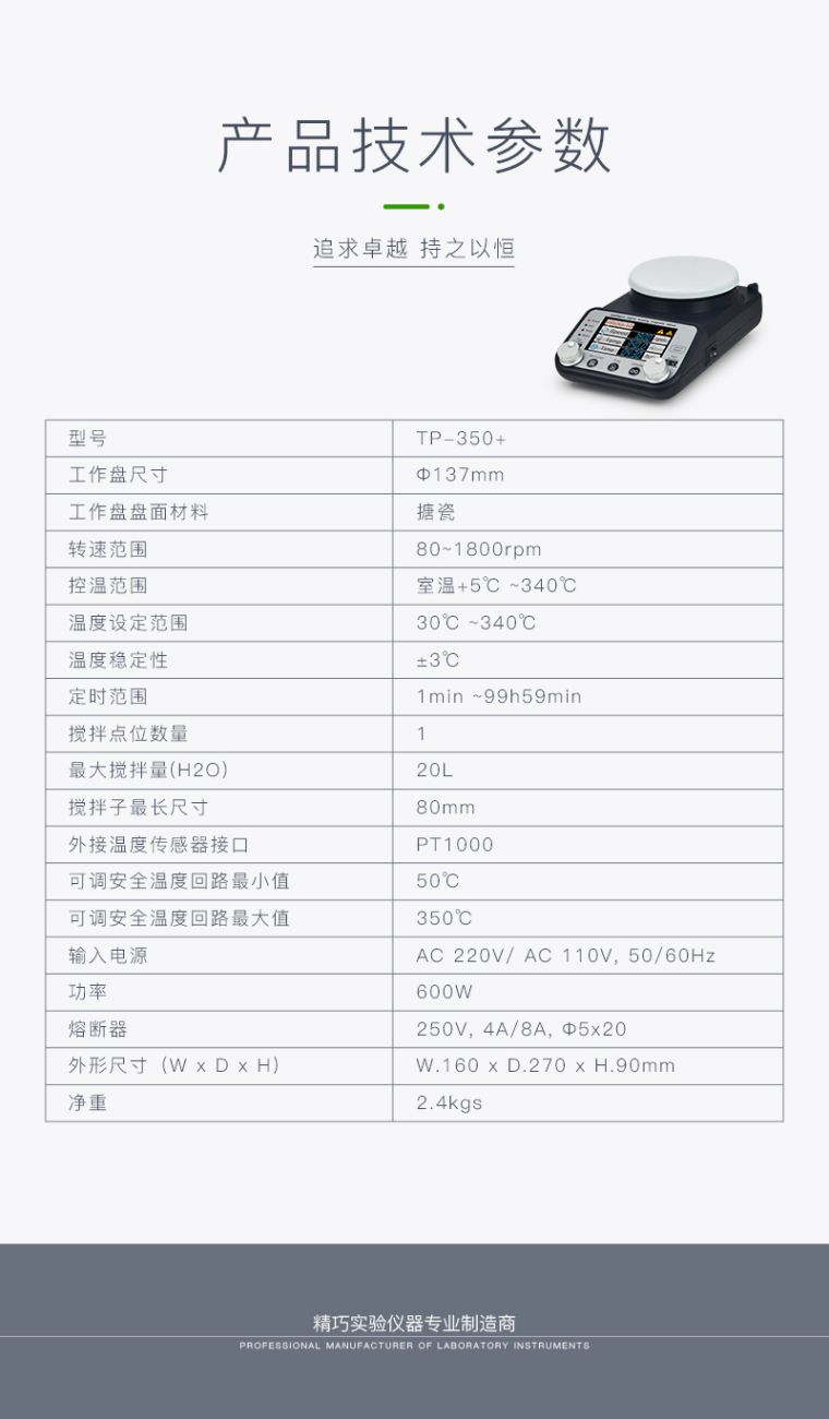 我对您的TP-350+磁力智能彩显加热搅拌器产品感兴趣,请发具体的信息及报价,谢谢!