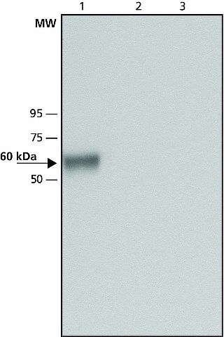 葡糖脑苷脂酶是一种具有葡糖神经酰胺酶活性的酶。溶酶体水解酶葡糖脑苷脂酶缺陷导致戈谢病。GBA 的突变将阻碍或阻碍 GBA 向内质网的转运。可用抗葡萄糖脑苷脂酶(C 端)抗体孵育 SDS-PAGE 凝胶 。抗葡萄糖脑苷脂酶抗体与人 GBA 发生特异性反应。