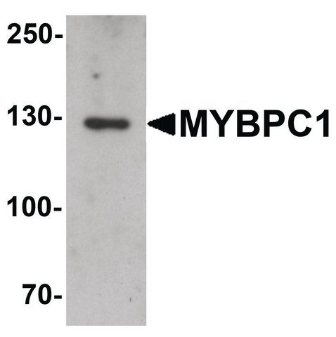 Antibody was raised against an 18 amino acid synthetic peptide near the amino terminus of human MYBPC1.