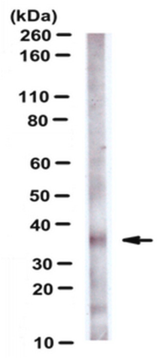 ~35 kDa observed