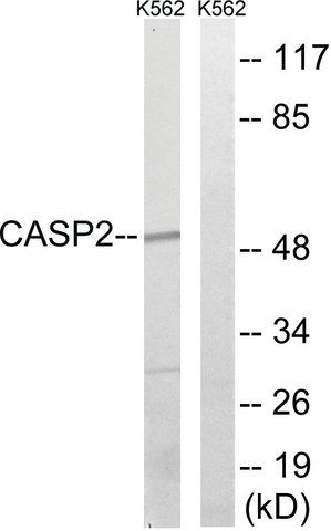 The antiserum was produced against synthesized peptide derived from human Caspase 2.