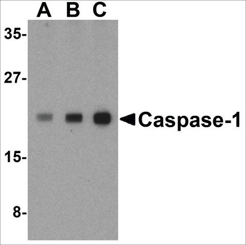 家兔体内产生的抗半胱天冬酶1 (ab1) 抗体已被用于蛋白质印迹和免疫荧光。