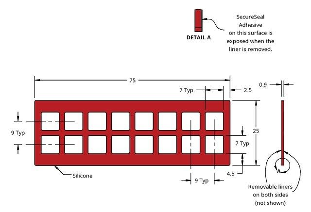 | 特点 | wells 16 (Square, 7mm x 7mm x 0.9mm depth) (Adhesive on one side) |