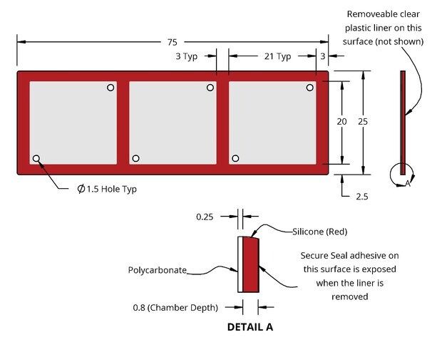 | 物料 | clear polycarbonate backing (0.25mm thickness) red silicon chamber |