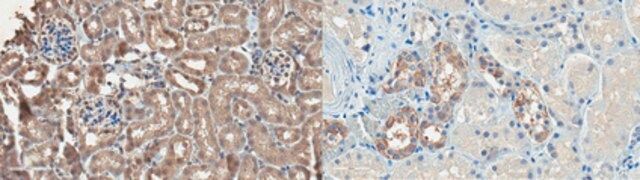 Immunohistochemistry Analysis: A 1:50 dilution from a representative lot detected FMO2 in mouse lung, mouse kidney, and human kidney tissue sections.