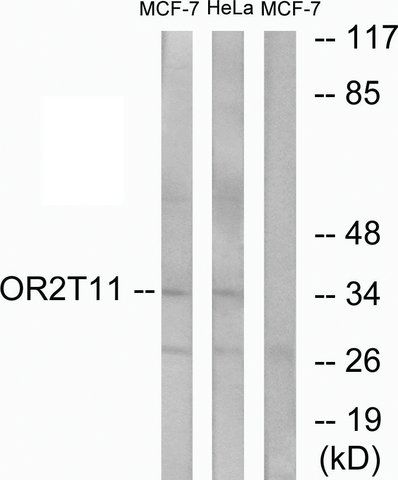 Anti-OR2T11 Antibody detects endogenous levels of total OR2T11 protein.