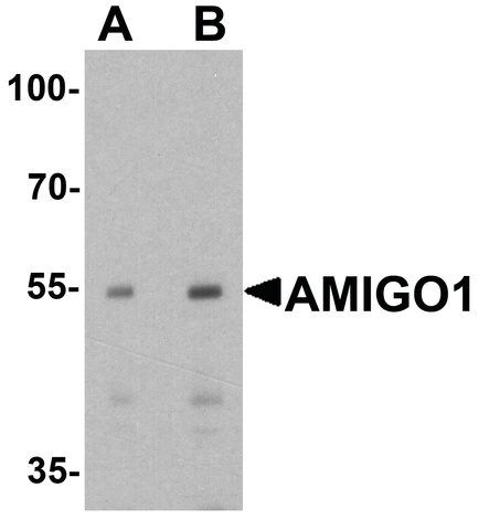 Antibody was raised against a 19 amino acid peptide near the carboxy terminus of human AMIGO1