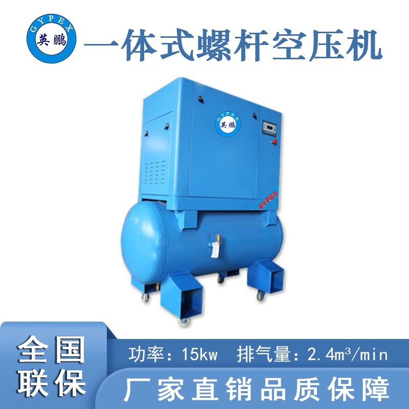 一、产品参数 品牌:英鹏GYPEX 型号:YPHB-05EX(YT) 电机功率:5.5kw 排气量:0.86m³/min 排气压力:0.8Mpa 排气含油量:3Ppm 电源电压:380V/50HZ 噪音:62±2(dB) 储气罐容积:300L 吸气条件:2-40℃ 设备重量:250KG 冷却方式:风扇冷却 工作原理:螺杆式压缩机 润滑方式:机油润滑一体式空压机 外形尺寸(长*宽*高):1350*800*1650(mm) 防爆标志:Ex d ib mb IIC T4 Gb 二、产品概述 防爆一体式螺杆空压机采用先进的防爆技术,使其性能更可靠;集安装方便、使用简单、移动灵活、外型美观等优点于一体。