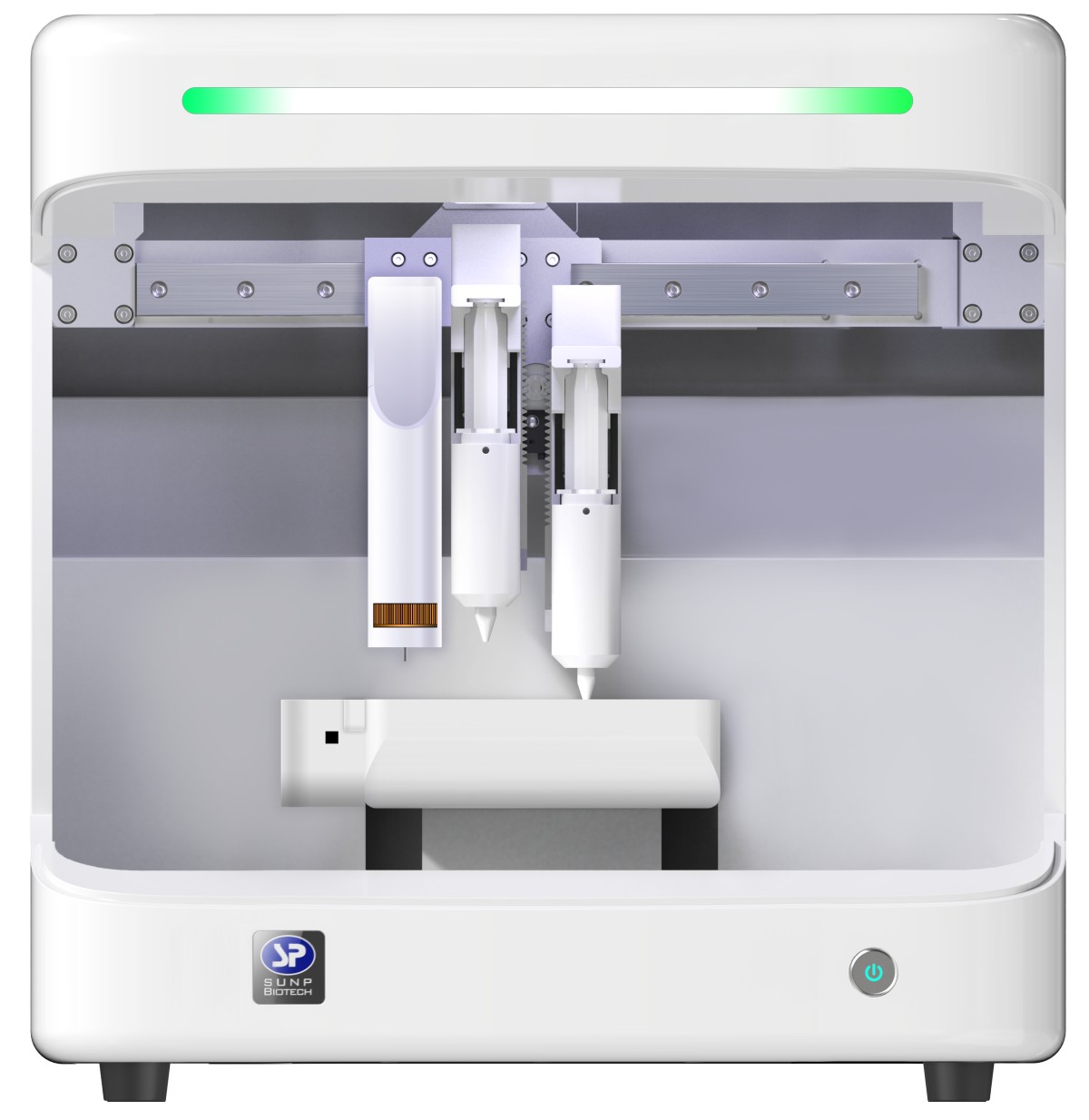 SunP BioMaker 2i 是上普生物专业级桌面生物3D打印机,通过搭载2个模块化高精度打印喷头,并配合其独立无菌洁净系统,可以实现水凝胶细胞打印、高分子支架打印、双材料复合打印、同轴打印等多种打印形式,是广泛应用于生物材料开发、组织工程、再生医学、个性化医疗的专业生物3D打印机。 应用领域: 1. 仿生组织器官 · 脊髓打印 · 心脏打印 · 皮肤打印 2. 组织工程支架 · 骨修复支架 · 半月板支架 · 骨-软骨支架 3. 细胞研究与治疗 · 细胞免疫研究 · 胚胎干细胞打印 · 神经细胞打印 4. 个性化药检模型 · 器官芯片 · 个性化肝癌模型 · 神经药物筛选的类脑模型 5. 高端医疗器械 · 抗HPV病毒蛋白缓释支架 · 心脏支架 · 血管支架 · 人工心脏瓣膜 6. 先进材料拓展应用 · 人造肉 · 磁性导电材料打印 · 电池打印 · 4D打印 |