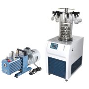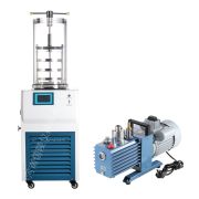 LGJ-10多歧管压盖型冷冻干燥机详细介绍: 真空冻干机LGJ-10多歧管压盖型冷冻干燥机包括:一台主机、一台真空泵、一套压盖装置、八个冻干瓶、八个橡胶阀、三块不锈钢物料盘、一套干燥室和一套物料干燥架。该机型采用压盖工艺,可用于冻干西林瓶装液体。先将液体装入西林瓶中,并浮盖好瓶子的胶塞以利于水分升华。接着将瓶子放入冷冻干燥机的干燥仓内,等待冻干完成。最后在真空状态下,使用压塞装置将胶塞压入瓶子中,形成可避免二次污染的冻干粉针剂,相当于真空封装。