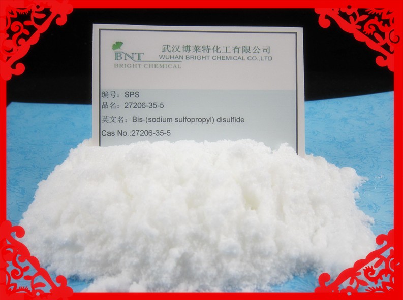 CAS No.:27206-35-5商品编号 F008商品名称 SPS(SP) 化学名称 聚二硫二丙烷磺酸钠 分 子 式 C6H12O6S4(Na)2 含 量 85% 外 观 白色或浅黄色粉末 应 用 它用于酸性镀铜光亮剂,可得到装饰性和功能性镀层。可以和典型镀铜配方中如非离子表面活性剂、聚胺和其它氢硫化合物结合使用,也可以和染料使用,如果再结合使用DPS和EXP2887起,将会得到更佳的效果。