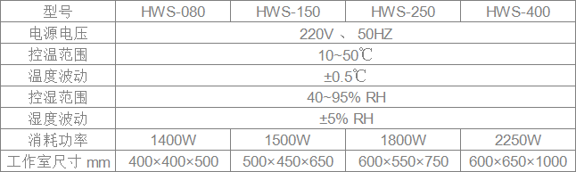 HWS型 恒温恒湿箱 一、用途概述 广泛用于药物、纺织、食品加工、生物工程等试验和工业产品各项温湿度测试。 二、产品特点: 1、采用镜面不锈钢内胆,四周半圆弧易于清洁,箱内搁板间距可调。 2、采用双重门结构,隔热性能好。内门采用全钢化玻璃门,打开外门,观察内情况时不影响箱内温度。 3、高精度、大容量湿度发生器。确保湿度控制发生快、精度高、波动小。 4、原装法国“泰康”全封闭压缩机,配置延时启动。高、低压力多重保护。