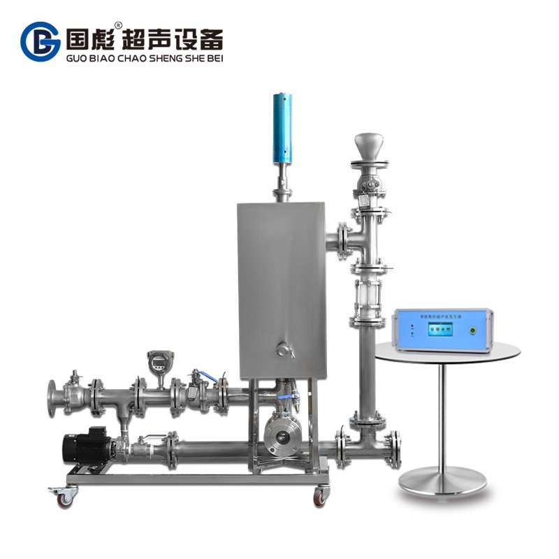 超声波对化学萃取、生物柴油生产、有机合成、治理微生物、降解有毒有机污染物、化学反应速度和产率、催化剂的催化效率、生物降解处理,超声波防垢除垢、生物细胞粉碎、分散和凝聚,造成了一个非常有利于反应过程的局部小环境,能大大提高反应速度,降低反应条件。 石墨烯超声制备装置(中试机) 一、超声在石墨烯制备中的作用 超声波设备在石墨烯制备中的应用,主要是在溶剂热插层法和氧化还原法上,这两种方法操作较为简便,而且成本低于其他制备的方法,是目前国内大规模制备纳米级石墨烯粉体主要采用的生产方式。由于超声波在液体中会产生空化作用,形成微射流、振动等物理现象,微观上,在液体中对悬浮颗粒起到一种高速搅拌、破碎、分离、分散的作用。简单的讲,就是超声波在制备石墨烯的溶液中,能起到反应加速和催化的作用。 二、产品图