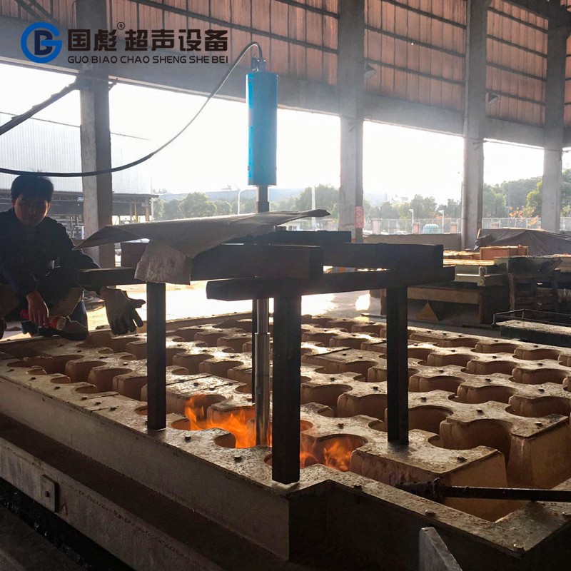 超声波对金属熔体的气泡消除也很有效,在超声波的作用下气泡的排出速度大大加快,能显著提高金属的品质。高能超声波在超声波处理、超声波金属处理、超声波晶粒细化、超声波金属凝固、超声波熔体消泡、超声波结晶、超声波声空化、超声波铸造、超声波凝固组织、超声波金属连铸等方面都有用武之地。 金属熔体处理设备 一、超声金属处理原理 高能超声具有独特的声学效应。在金属凝固过程中引入超声振动,凝固组织从粗大的柱状晶变为均匀细等轴晶,金属的宏观及微观偏析均得到改善。普遍认为,高能超声波在超声波处理、超声波金属处理、超声波晶粒细化、超声波金属凝固、超声波熔体消泡、超声波结晶、超声波声空化、超声波铸造、超声波凝固组织、超声波金属连铸等方面都有用武之地。 超声波对金属熔体的气泡消除也很有效,在超声波的作用下气泡的排出速度大大加快,能显著提高金属的品质。 被处理熔体盛在特定的容器中,如坩埚、熔炼炉、结晶炉,把超声波能量发射到金属熔体中有许多种方法。这其中,将超声波工具头插入熔体中,直接向熔融金属液体发射超声波,无疑是***的一种。熔体在冷却结晶的同时也被强烈的超声波作用,材料特性随之发生改变。对特定熔体而言,熔体量越少,超声波发生器的输出功率越大,超声波作用的时间越长,则超声波综合作用强度就越高。也就是说,我们也可通过控制金属熔体量的多少、超声波发生器输出功率的大小、以及超声波作用的时间,来控制超声波作用的效果,找到超声波作用和实际效果的**平衡点。 在需要特别大的超声波功率的情况下,可以将多个超声波单元组合使用,使超声波功率得到成倍增加。 国内外众多的专家学者、生产技术人员已经做过各种研究试验,证明超声波在处理金属熔体过程中的显著功效。 优势: 1.耐高温:最高承受温度800℃ 。 2.安装简便:通过法兰连接固定 。 3.耐腐蚀:使用高强度钛合金工具头 。 4.功率大:单工具头的最大功率可达3000W 。 二、超声金属处理设备组成 超声波金属熔体处理设备主要由超声波驱动电源和超声波振动设备两部分组成,并通过专用电缆连接。 超声波驱动电源起着将50Hz-60Hz的市电(交流220V)转化为高功率、高频率的电信号并输出给超声波振动部件的作用。超声波振动设备主要包括大功率超声波换能器、变幅杆、焊接法兰、工具头,用于产生超声波振动,并向工艺对象中发射此振动能量。换能器在纵向做来回伸缩运动,从而将输入的电能转换成机械能(即超声波),变幅杆依据设计需求来放大振幅,隔离反应溶液和换能器,一般情况下,变幅杆与发射头之间连接有焊接法兰,焊接法兰起到固定整个超声波振动系统的作用。变幅杆与工具头相连,变幅杆将从换能器传递过来的超声波振动能量传递给工具头,最后通过工具头将超声波振动能量发射到工艺对象中。 三、实物图