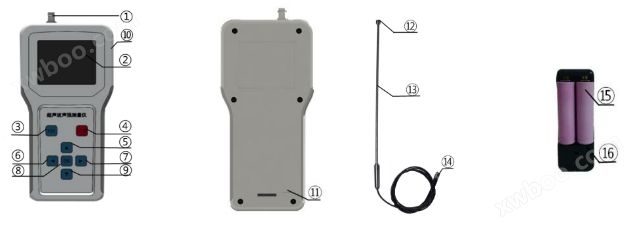 1 | 仪表BNC接头 | 7 | 右翻键 | 13 | 不锈钢棒 |