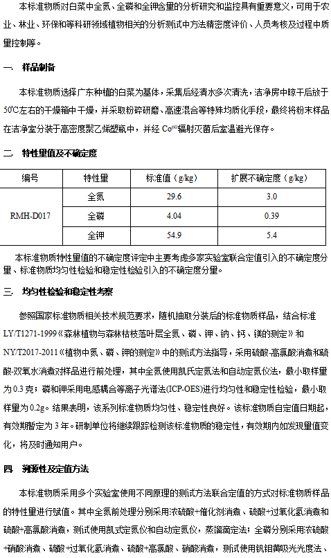芒果树枝中全氮,全磷和全钾分析标准物质