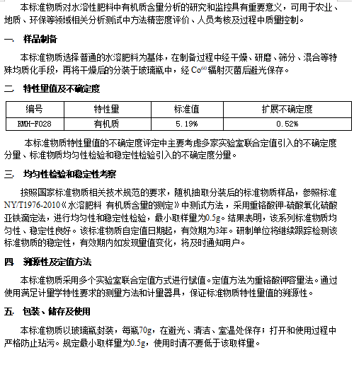 水溶肥中有机质分析标准物质