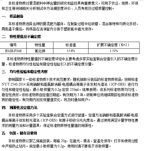 土壤调理剂中钙,镁,硅,铝,磷,钾,氟分析标准物质