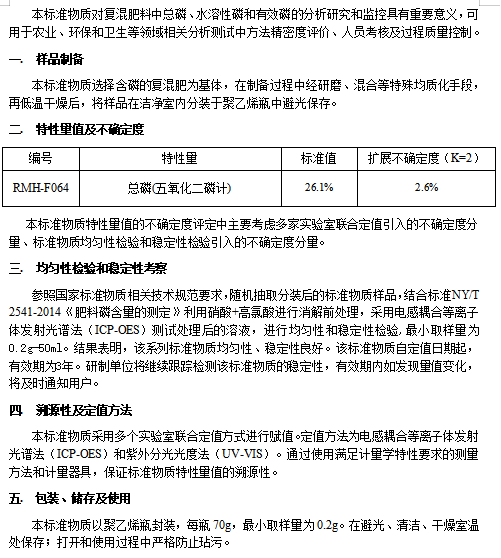 肥料中总磷分析标准物质
