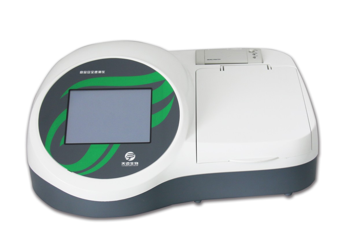 产品特点 (1)大屏幕液晶显示,全中文操作界面。 (2)触摸液晶屏控制,操作简便。 (3)大容量存储,可批量保存检测数据。 (4)配备高速内置打印机,打印单条检测结果仅需3秒。 (5)检测方法符合相关标准,检测精度高,前处理过程简单,检测速度快。 (6)最多32通道比色池,农残每个检测通道可独立计时。 检测数据自动保存,且可根据时间筛选检测数据。 主要参数 (1)屏幕:5.7寸,触摸屏; (2)内置热敏打印机; (3)工作环境:0~40 ℃; 净重:2.6kg。 检测项目