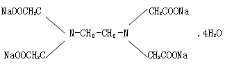 品名:四水合乙二胺四乙酸四钠盐英文名:EDTA-4Na.4H2O (Tetrasodium EDTA)分子式:C10H12N2Na4O8·4H2O CAS NO.: 13254-36-4 CAS NO.: 64-02-8 (Anhydrous)分子量:M=452结构式:物化性质:乙二胺四乙酸四钠盐是一种白色结晶粉末,含有4个结晶水。易溶于水,水溶液呈碱性,微溶于乙醇等有机溶剂,高温下可失去部分或全部结晶水。质量指标: