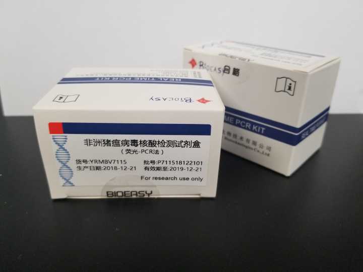 【产品说明】 本产品基于独特的恒温荧光检测技术,可针对抗凝血、脾脏、扁桃体、淋巴结、肾脏和骨髓等样品中非洲猪瘟病毒的的特异核酸片段进行扩增,仪器实时监测扩增过程中的荧光信号变化,自动判读结果。 本产品用于非洲猪瘟病毒的检测,检出限为102copies/μl。 【货号】YRMBV7201-2 【包装规格】50T 【试剂盒组成】