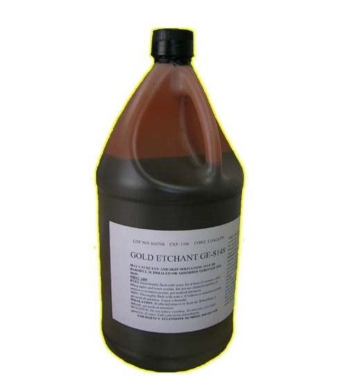 金薄膜蚀刻剂在光刻法制作微电子线路中用以选择蚀刻金。和光刻技术相结合这些蚀刻剂可在氧化铝或其他基板上的薄膜上制作精密电极和电阻图案。