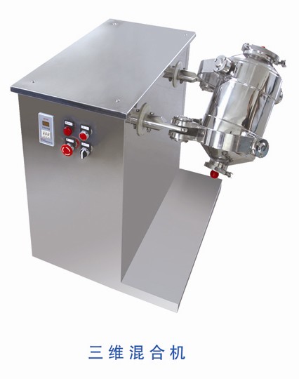 混料桶具有X、Y、Z方向的三维运动,在进行自转的同时还进行公转,使物料在混合时不产生积聚现象,对不同比重,不同密度和状态的物料混合不产生离心力的影响和比重偏析。混合均匀率达99%以上。低噪音,低能耗,寿命长,体积小,结构简单,操作和维护方便。由于不锈钢混料桶内光洁且无其它装置,故更换物料或清洁混料桶内壁十分方便。
