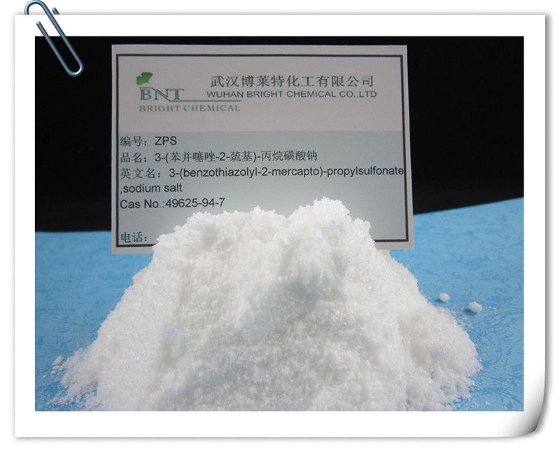 ZPS(3-(苯并噻唑-2-巯基)-丙烷磺酸钠)CAS No.: 49625-94-7商品编号 F010 商品名称 ZPS 化学名称 3-(苯并噻唑-2-巯基)-丙烷磺酸钠 分 子 式 C10H10O3NaNS3 含 量 90% 外 观 淡黄色粉末 应 用 酸性镀铜光亮剂,与聚醚和润湿剂配合使用,可得到光亮延展性好的镀层。同时,它也可用于贵金属的化学镀,还可作电镀稳定剂,以防止无序沉积。