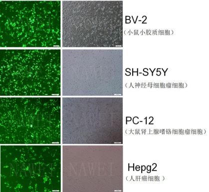 引言 随着越来越多的生物相关研究领域的扩展,尤其是基因组编辑领域的迅速发展,现有的分子和细胞技术需要得到改进,需要更先进的过表达技术来最大限度地发挥其潜在的应用。近年来纳米技术的发展为细胞转染技术提供了新的研发思路。泛瑞是**一代研发合成的纳米转染试剂,属于新一代非病毒转染试剂。其利用细胞对特定尺寸纳米粒的胞吞原理,是经液相超声分散、超离等多级工艺制备合成不同粒径的纳米粒子转染试剂。该纳米粒子呈球形,具有较大比表面积,有利于负载各种核酸分子。纳米粒子经修饰后带有正电荷,能与各类带负电荷的核酸(DNA, siRNA, miRNA等)结合,与核酸稳定结合后,能有效保护核酸被环境中的各类酶降解。由于制备出的纳米粒子-核酸复合物,是纳米级别,能高效被细胞识别并胞吞,进入细胞后,利用纳米粒子上的正电荷产生的质子海绵效应,所负载的核酸能很容易从溶酶体中释放出来发挥功能。纳米粒子-核酸复合物利用仿生原理,能有效降低细胞毒性,适用于体内、体外多种组织和细胞过表达。同时该纳米粒子可以与核酸直接混合,不需用其他试剂稀释后再混合,混合后15分钟即可加入含血清、抗生素等完全培养基中进行转染,操作流程十分简便。该产品解决了病毒载体的诸多缺点,如病毒毒性、免疫原性、有限的 DNA 装载量等,并具有高效率和低细胞毒性等特点。适用于将小片段RNA,质粒转染各种细胞系、原代细胞等;或将小片段RNA,质粒进行活体组织内转染。与目前常规应用的脂质体试剂相比,其转染过程操作更加简便,转染效率更高,价格低廉。与目前市面上广泛应用的Lipofectamine 3000相比,FanRi-Trans更具成本效益,应用更为广泛。 FanRi-目前开发出两款剂型,-CE 用于各类细胞过表达和干扰,- T1用于动物体内进行RNA干扰或蛋白过表达实验。转染时只需将转染试剂与待转染的小RNA、质粒按比例混匀,孵育15分钟后即可加入到细胞培养基中或注射到体内组织,操作简便,极大地简化工作流程。-t1可将小片段RNA或质粒转染到动物体内多种组织,在动物体内进行RNA干扰或蛋白过表达实验。注射后3天即可取组织进行检测相关基因或蛋白的表达情况。T1 能保护和浓缩核酸,避免核酸被体液中的核酸酶破坏,能耐受体内复杂的环境,且毒性低,不会诱发机体产生免疫反应。 材料与方法 l 质粒及小RNA设计与制备 对于质粒制备,需要用无内毒素质粒抽提试剂盒提纯,确保低内毒素活性和高质量的DNA,质粒浓度一般不低于200ng/uL。为观察转染效率,质粒载体上可以携带荧光基因,比如绿色荧光蛋白GFP等。 对于小RNA制备一般由公司合成,加入RNA-free 酶水稀释至浓度为20μM 即可进行转染。为观察转染效率,小RNA上可以修饰荧光集团,比如Cy5.5等。 l 细胞培养 提前一天将细胞种植在24孔板,以转染时细胞密度在70-80%为宜,1天后,待细胞状态良好时进行实验(注意:细胞处于良好的对数生长期状态具有较高的转染效率)。 l FanRi-Trans CE细胞转染流程(以24孔板为例) ① 在转染前30 min,给待过表达细胞更换新鲜培养基。 ② 转染复合物制备(以24孔板为例):将2.5 μL(母液浓度20 μM)小片段RNA或 2.5 μg质粒直接加入到2.5 μL转染试剂中,充分混匀(可用振荡器振荡或用加样器吹吸混匀),室温静置15分钟。转染复合物制备完成。 ③ 将转染复合物加入到培养基中,轻柔混匀,将培养板放回培养箱中培养,转染24后如细胞状态好可不必更换培养基 注意:转染过程中可以采用含血清的完全培养基培养,且有助于提升转染效率。 ④ 对于转染带荧光的小片段RNA, 转染6小时后即可应用流式细胞仪,荧光显微镜或激光共聚焦显微镜检测实验效率。如果是检测的目的基因mRNA表达水平,推荐在转染后24-48 h检测。如果是检测蛋白表达水平,推荐在转染后48小时后进行检测。 ⑤ 该产品可以同时将多种小片段RNA,多种质粒或小片段RNA和质粒进行细胞共实验。