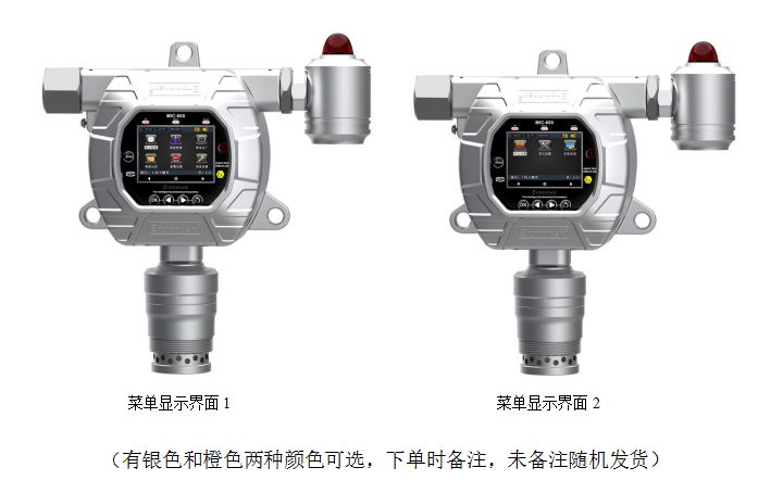 MIC-600固定式检测仪,应用于现场气体浓度24小时连续在线监测及温湿度的测量,现场显示浓度和超标声光报警,远程数据传输。采用2.5寸高清彩屏实时显示浓度,根据不同的检测气体选用进口品牌传感器(霍尼韦尔、日本根本、英国CITY、英国阿尔法、英国Dynament、瑞士Membrapor等)。检测原理有:电化学、红外、催化燃烧、热导、PID光离子等。本公司自有的电路设计、成熟的内核算法处理,取得了多项软件著作专利和外观专利,从而诞生了本款多功能型固定式复合气体检测报警仪。 MIC-600固定式检测仪特点: ●本安电路设计,防爆认证,二级防雷、防静电,防雷和防静电能力超过国家标准,抗高强度脉冲浪涌电流冲击。高可靠性和稳定性。防反接设计,任意形式的反接都不会损坏仪器 ●符合EMI、EMC标准,通过国标测试及CMC计量器具许可认证。 ●标准总线RS485(RTU)和4~20mA标准信号同时输出,3组继电器开关量输出,现场声光报警(选配)。可选频率输出 200-1000Hz 、Hart协议信号、1~5V输出、无线传输(2~5公里或不限距离)。可以有线或无线远程实时监控,将数据上传到手机或通过局域网、互联网传输到环保局、其他监控中心、监控设备、监控电脑,通过免费上位机软件或气体报警控制器实时监控现场的浓度。 ●兼容各种二次表、数据采集模块、PLC、DCS系统,可直接驱动电磁阀、风机、报警器等设备,也可以通过驱动中间继电器来驱动大功率设备。选配MIC2000控制器可以同时监控1000台检测仪。 ●大容量数据存储功能,可以记录实时浓度值、温湿度、或只记录报警值及时间。支持本机存储或SD卡存储,需更大容量订货时要注明。SD卡存储的容量可订制。通过免费上位机软件进行数据导出和分析,支持在本机上查看数据或删除数据,可设置在容量不够的时候自动覆盖数据或不覆盖数据,自动停止记录功能。 ●标配红外遥控器,可以实现在危险场合免开盖操作,比如:修改报警点、浓度校准、零点校准、消音、恢复出厂、进入菜单、查看记录、4mA输出、20mA输出(校准其他采集设备需用这个功能)。 ●中英文界面可选择,默认中文界面,支持气体浓度单位自由切换,常规气体不需要输入分子量,特殊气体输入分子量就自动计算并切换,单位可选:PPM、mg/m3、Vol%、LEL%、PPHM、ppb、mg/L ●2.5寸高清彩屏(LCM)显示实时浓度、时间、温度、湿度、存储状态等信息,可同时检测1-~6种气体浓度和温湿度,菜单界面采用高清仿真图标来显示各个菜单的功能名称,简明中文或英文操作提示。 ●三种显示模式可切换:同时显示多种气体浓度、大字体循环显示单通道气体浓度、实时曲线,各通道之间自动或手动循环可切换,可设置是否显示最大值、最小值、气体名称,可查看历史记录曲线图。 ●自动跟踪零点防止漂移,温度补偿、多级校准,能同时符合国标和各个地区的地方、省级计量局标准 ●数据恢复功能、浓度校准误操作自动识别并阻止,可以避免由于操作不当引起的不良。 ●可记录校准日志、维修日志、故障解决对策,传感器寿命到期提醒,下次浓度校准时间提醒功能 MIC-600固定式检测仪显示界面: