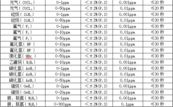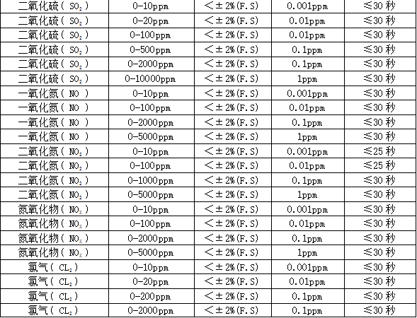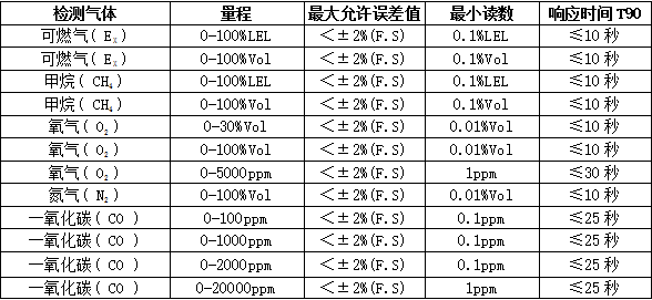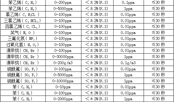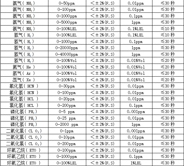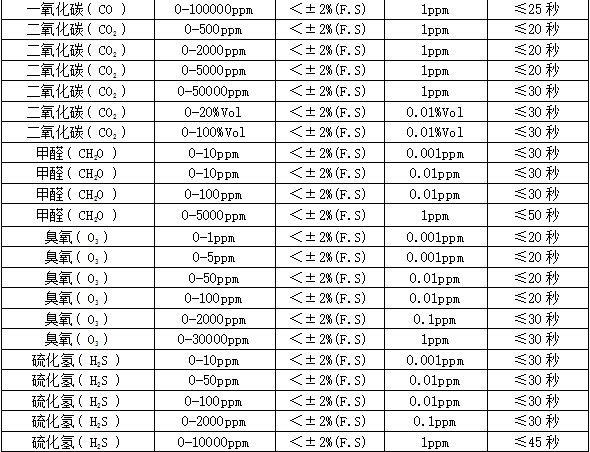MIC-600固定式检测仪技术参数: 检测气体:O3 选配:最多可同时检测任意1~6种气体和温湿度。 应用场合:石油、化工、医药、环保、燃气配送、仓储、烟气分析、空气治理等所有需要固定安装,在线检测气体浓度的场合。 检测范围:0-50、100、200ppm、500ppm 分 辨 率:0.01ppm或0.001ppm(0~10 ppm);0.01ppm(0~100 ppm),0.1ppm(0~1000 ppm),1ppm(0~1000 ppm以上),0.01毫克/升(0~200%毫克/升)、0.1%LEL、0.01%、0.001%Vol。 检测原理:紫外吸收原理,长寿命高精度,长光程,流通式,自动跟踪零点,要配TH1000机箱出货 允许误差:≤±2%F.S (其他或更高精度可订制) 线 性 度:≤±1% 响应时间:T90≤30秒重 复 性:≤±1%不确定度:≤±1% 信号输出:总线制RS485(RTU),三(四)线制4~20mA,选配:0~20mA、1~5V、0~5V、0~10V、无线传输、网络传输、短信报警。恢复时间:≤30秒 工作环境:温度:-40℃~+70℃,湿度:≤10~95%RH (常规)非凝露场合,在凝露场合使用须订制或订货时注明使用环境。工作压力范围:大气压±30%,部分传感器可在7公斤压力下检测 显示方式:现场2.5寸高清彩屏显示,可选现场无显示,或选配MIC2000控制器远程显示、控制、报警 工作电压:12~36VDC直流,单台设备的标准电源为24V,1A或大于1A 的直流稳压开关电源 功 耗:瞬间最大电流:电化学原理60毫安,催化或红外原理120毫安 电源参考:24V,2.1A 的开关电源可以带动30台有毒气体检测仪,或15台可燃、红外气体检测仪 工作方式:在线式安装,在线检测,扩散式测量;可选管道式、流通式、泵吸式测量。 安装方式:管道式、壁挂式。管道式的工作压力为大气压±30%,超出范围需降压处理。 报警方式:默认1路,可选3路无源触点(干节点)输出,三级报警,报警点可设置。现场声光报警(选配)。 连接电缆:4~20mA选三芯屏蔽电缆,RS485选四芯,距离超1000米时 单根线径≥1.5mm;屏蔽层两端接大地并保证接地良好。 防护等级:IP66 防水溅和短时间雨淋 防爆类型:隔爆型 防爆标志:Exd IIC T6 Gb 防爆证号:CNEx17.3959 执行标准:GB15322.1-2019 《可燃气体探测器 第1部分》 GB 3836.1—2010 《爆炸性气体环境用电气设备 通用要求》 GB 3836.2—2010 《爆炸性气体环境用电气设备 隔爆型“d”》 外型尺寸:260×180×90mm(L×H×W)大气室 260×230×90mm(L×H×W)大气室带灯 240×180×90mm(L×H×W)常规气室 240×230×90mm(L×H×W)常规带灯 (根据组合不同略有差异) 重 量:1.8Kg(根据组合不同略有差异) 标准附件:说明书、合格证、保修卡、外箱包装 选配件:一体式声光报警器、分体式声光报警器、24V直流稳压电源、RS485/RS232转换器、USB/RS232 转换连接线、TCP/IP转换器、 无线传输(选配):选配功能,可以把数据无线传输到手机、远程监控中心、监控电脑等监控设备,利用上位机在电脑上,进行数据分析、存储、打印等功能 预处理系统(选配):选配:常温高湿预处理系统、高温高湿度预处理系统、高温高湿高粉尘预处理系统 温湿度测量(选配):选配:温度-40℃~+120℃,精度0.3℃湿度:0-100%RH,精度3%RH 安装型附件:选配:墙壁安装支架、固定在管道上的安装卡扣(四分、六分管)、管道安装不锈钢螺纹焊座或法兰(需注明管道或法兰尺寸,如DN50、DN15...)、防雨罩、24VDC或220AC采样泵(采样距离10米)、真空泵(采样距离40米)、24V开关电源、减压阀、流量计。 部分可检测气体列表: