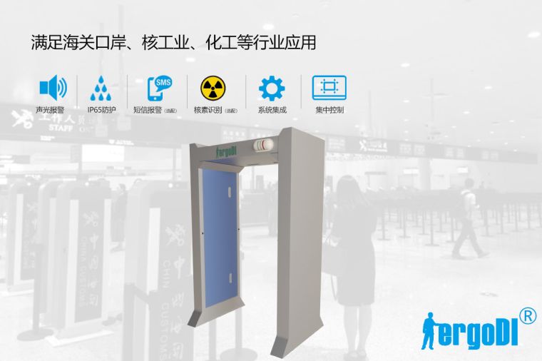 系统必配硬件组成 -γ探测组件:塑料闪烁体2块+低噪声光电倍增管2套 -闪烁体体积:20L、30L可选 -支撑结构:门式防水框架1套 -探测器准直:5面环铅铅盒2套 -报警装置:现场及控制中心声光报警各1套 -中心管理控制系统:电脑、硬盘、数据库及分析软件1套 -传输组件:TCP/IP传输组件1套 -稳压续航装置:UPS不间断电源1套 -行人减速通过台:钢制波纹防滑台1套 系统选配辅助装置 -中子探测组件:长寿命中子正比计数器2-4个 -在线核素识别组件:大体积碘化钠探测器+低钾光电倍增管1套 -探头端分析装置:1024道多道γ能谱分析器1个 -占位及测速装置:对射式红外测速系统、超声波测速系统(可选)2对 -现场记录:高清夜视连续摄像、拍照装置2套 -现场记录纠正:人脸识别系统1套 -短信报警系统:SMS短信报警系统1套 -人员防护装置:防护服及个人剂量报警仪1-2套 -现场寻源装置:便携式n、γ检测仪1台 -危险品处理装置:大铅当量源罐1只,加长放射源操作钳1把 -报告输出:激光彩色打印机1台,打印纸2包 技术特点 1、BIN (Background Identification of Normal ) 本底忽略技术 该技术能够高速地在高辐射本底的情况下快速检出低水平的人造放射性物质,其检出下限低可达本底辐射水平的1.05倍,检出时间可达100毫秒;同时允许车辆在快速移动的情况下对放射性物质进行检出,适合快速检出;同时可以保证设备不会因为本底的大幅升高而误报警;并且可以对车辆占位时导致对天然射线屏蔽引起的本底计数降低进行补偿,增加了检验结果的真实性,提高了检出概率,尤其对弱放射性检出有很大帮助; 2、MCA多道能谱分析器 配置了多道能谱分析器的大体积碘化钠探测器可以实现对放射源进行1024道分析,可在1秒钟时间内准确报告核素类型;“该功能对国防需求的敏感核材料检出有突出贡献”;该功能可实现对医疗核素进行安全报警; 3、特征SIGMA统计算法 通过特征SIGMA算法用户可以轻松调节设备的检出灵敏度和误报的概率关系,可以在需要的场合提高灵敏度检出极微弱的放射源(如放射源遗失),或者在长期的在线监测过程中防止设备误报,做到收放自如; 4、长寿命3He中子正比计数器 常规的3He计数器器寿命约为1011个计数,我公司采用长寿命探测器计数寿命可达1017个计数,提高探测器使用时间一百万倍,适合在在线式辐射监测和高辐射场中进行长期工作; 5、NORM拒绝功能(K40) 该功能用于判定天然放射性物质(K40),如结合碘化钠探测器及MCA多道能谱分析器可以准确区分医疗核素、工业核素和天然放射性核素。 6、高速采样,实时本底 采样频率100ms,允许车辆快速通过;每1分钟实时更新本底,保证检测结果的准确性; 7、人脸识别系统 可以将从不同角度拍摄的人脸特征合成为完整的正面人脸照片,方便辨识; 产品执行/适用标准(仅展示部分标准) GB/T 24246-2009放射性物质与特殊核材料监测系统 GB/T 31836-2015辐射防护仪器 用于探测和识别非法放射性物质运输的基于谱分析的门式监测系统 JJF1266-2010 行人与行李放射性监测装置校准规范 GB/T 4208-2017外壳防护等级(IP代码) IEC 62244 国家边境放射性和特殊核材料探测用辐射防护监测仪 技术指标 RJ12系列行人、行包放射性检测设备-通道式行人辐射监测设备