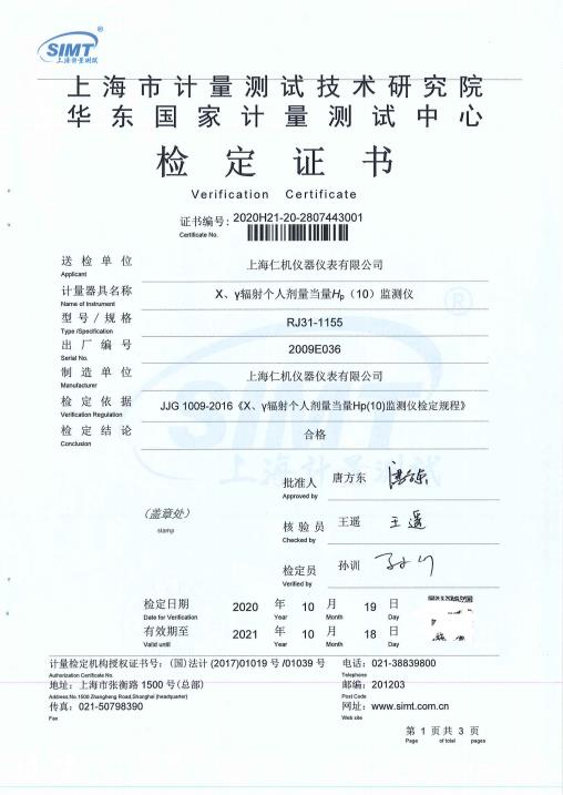 RJ21-1155型场所辐射监测仪是辐射场所在线监测γ及X辐射剂量率检测的理想仪器,主要适用于环境实验室、医院、核电站、辐照室、加速器、探伤室、测厚、核子秤、料位计、核医学、分子生物学、放射化学、冶金、核原料储存以及机场、码头商检等领域的单点监测,自带开关量输出,可通过上位机或RJ21主机组网监测。 特 点 - 可固定使用,也可移动到需要的工作场所 - 高亮高分贝声光报警,开关量输出,可与门禁联动 - 任意设置上、下限报警阈值。传感器故障报警 - 可选配三角支架或台式底座放置在容易观察的位置 - 高效率探测器,灵敏度高,响应速度快,LED显示剂量率,清晰可见 - 可独立使用也可以多个组成监测网络(需要RJ21控制主机或监测平台) - 内置485工业总线接口,可与控制主机以及上位机监测平台有线或ZigBee、TCP/IP协议,可远程读取仪器实时剂量率和设置仪器参数(可选) - 自带开光量输出 产品执行/适用标准(仅展示部分标准) GB/T 14054-2013辐射防护仪器能量在50keV~7MeV 的X 和γ 辐射固定式剂量率仪、报警装置和监测仪 JJG393-2018 便携式X、γ辐射周围剂量当量(率)仪和监测仪 JJG521-2006 环境监测用X、γ辐射空气比释动能(吸收剂量)率仪 GBZ 117-2022 工业探伤放射防护标准 GB/T 17626.2-2018 电磁兼容试验和测量技术静电放电抗扰度试验 GB/T17626.3-2016 电磁兼容试验和测量技术射频电磁场辐射抗扰度试验 GB/T 4208-2017外壳防护等级(IP代码) GB/T 12726 核电厂安全重要仪表 事故及事故后辐射监测 NB/T20026-2010 核电厂安全重要仪表和控制系统总体要求 技术指标