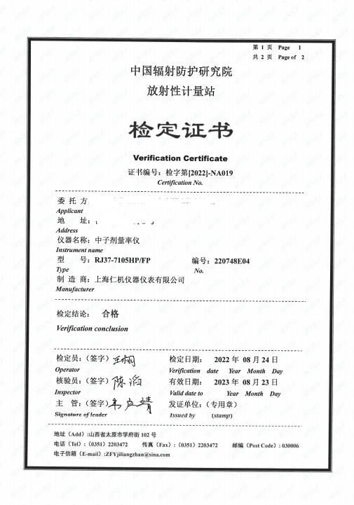 中子剂量率当量率...计量检测报告
