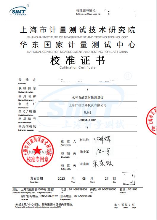 RJ45-2水和食品污染放射性检测仪用于测量食品、水(包括各种饮料)中137Cs、131I放射性同位素的比活度,是家庭、企业以及检验检疫、疾控、环保等机构对食品或水中放射性污染水平进行快速检测的理想仪器。 该仪器轻巧美观,可靠性⾼,配备⾼像素且环保节能的LCD彩⾊显⽰屏,⼈机交互简洁⽅便,便于⼯作⼈员随⾝携带并即时对⽬标进⾏检测。现已经⼴泛应⽤于辐射监测与防护的相关部门,为国家反恐与核应急、核电站、海关与出⼊境检验检疫等提供了可靠的技术⽀持和决策贡献。 仪器用途 在非战争环境下,此仪器可作为现场核素活度检测仪,如核废料处理现场放射性核素活度分析,核泄露事故现场放射性污染监测等,即可现场获得所需结果。同时也可作为实验室放射性核素活度分析仪,对采集的样品进⾏测量。此仪器是核辐射监督检查监测机构,核应急中心等单位应对核技术发展现状下存在可能隐患的**仪器之一。 在战争环境下,该仪器可作为核战争或核辐射污染区的现场情况监测仪,以检测现场的主要放射性核素活度及受污染严重程度,以便为采取进一步相关行动提供科学有力的根据。产品特点 单片处理器数据处理和保存,LCD直接显示放射性活度和比活度最大200组历史数据查询 报警指示灯和蜂鸣器告知放射性危险 功能软件键设计,简单易懂 内置微型电池,断电后内部时钟继续运行,设置参数不丢失 随机配备电子秤或者专用测量杯,可测量液体饮料和固体食物 全金属壳体,内置铅屏蔽层,有效隔离外界辐射干扰 适配器和锂电池双电源供电,可在室内或携带外出使用 可选USB接口连接PC机导出数据 产品执行/适用标准(仅展示部分标准) 技术指标