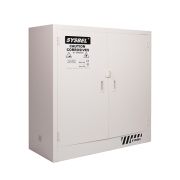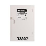 SYSBEL高品质易燃液体安全柜由双层18 Ga(1.2-mm)钢板通过点焊接构造,两层之间相隔38mm的形成良好的防火绝缘层; 左右两侧设置通风装置有效降低挥发性物质浓度,预防火灾产生; 树脂粉末涂料处理,表面光亮,防尘,防锈和防潮; SYSTEX三点联动锁减少摩擦或机械火花,降低静电积蓄; 安全挂锁配置(选配),实现双人双锁管理,符合中国《危险化学品安全管理条例》的规定; 2"(53mm)深的盛漏槽防止泄漏的液体外溢,符合盛漏规范; 独有的防溢式层板防止意外泄漏的化学品四溢,层板可以依据用户需求任意调节,增加空间使用率,每隔6.5cm; 用户可以选择安装FM认证的防静电装置(单售),将静电荷导入大地,降低静电火花造成火灾风险; 连续的琴式铰链使得柜门平稳闭合开启; 醒目的标签可以在能见度较低的光线下辨识,提供了额外的安全保障; 细节展示