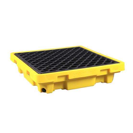 结构坚固,可承载满载的的油桶,化学品桶及各种存储容器及机械设备; 聚乙烯材质,抗紫外线,防锈,防腐蚀,可抗绝大数化学品; 橘皮表面防滑格栅在满载时不会压裂,可拆除,有利于快速处理盛漏液体; 托盘可使用叉车搬运,平台可拼靠成盛漏工作站; 有利于保持地面干燥,避免滑到及摔倒事故; 所有盛漏托盘和平台均可嵌套叠加,节省空间及运输成本; 配置排漏堵头,操作简单; 可选择搭配斜坡方便大宗物件搬运; 符合美国环境保护署(EPA)环境保护法容器使用及管理条例和泄漏控制规范EPA 40 CFR 264.175及泄漏预防和控制(SPCC)规范,美国国家消除污染排放制度 细节展示