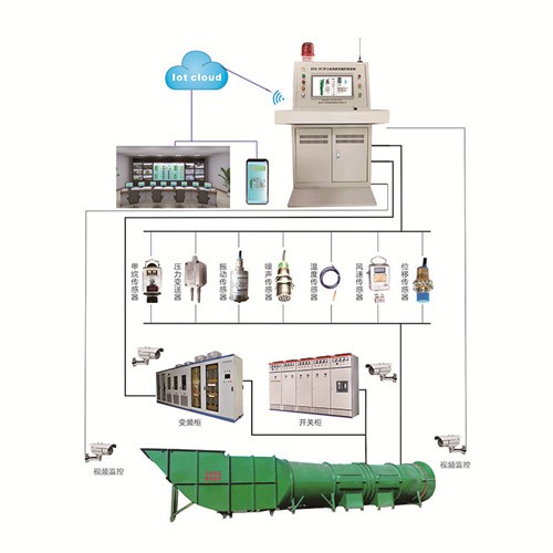 ZFG-PC型主扇风机智能控制系统 一、产品简介 本系统设计科学、先进、性能可靠,功耗低,采用高性能PLC冗余控制系统,可实时动态控制主扇风机的正常运行,同时对主扇风机的运行状态进行实时监测,当出现工作异常时,立即给出报警信息,并可自动切换至备用风机运行,确保无间断连续供风。在系统正常运行过程中,可自动切换风机,实现自动轮值运行。同时配置手动控制功能,可根据工作需要进行手动控制。 二、主要功能 1.实时监测主扇风机运行状态,包含工作电压、电流、风速、风压、风量、振动、噪声、温度等工作参数。通风机轴承、电动机轴承、电动机定子绕组温度监测、超温保护功能和振动监测及报警功能。 2.采用高性能PLC控制,工作稳定可靠,优化的程序设计,响应快速准确。 3.模块化系统设计,结构合理,便于后期扩充功能。 4.自诊断功能完善,系统工作异常实时报警并记录。 5.通用多功能上传接口,可接入矿井以太网平台。 6.配套采用知名厂家高压变频驱动系统,工作稳定可靠。 7.自动无人值守轮流值班无缝切换、主扇风机故障自动切换,实时故障报。 8.可配套云平台系统,监测数据实时上传手机及远程电脑。 |
