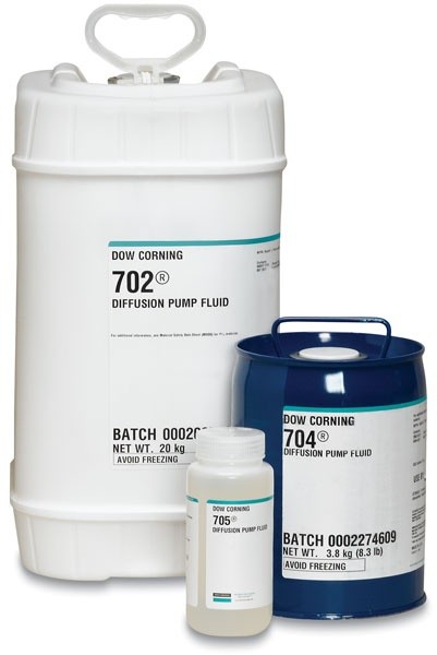 DOW CORNING 704是单一组分油,用于10-6-10-8托和10-10-10-11托的高真空。它在困难苛刻的应用中用得很好,甚至通大气后在工作温度仍能提供快速抽真空。 类型 单一组分硅材料 物理形式 流体 特性 苯含量高、化学惰性、无杂质、抗氧化、辐射和爆炸 主要用途 用于制造10-6-10-8托(无阱)和10-10-10-11托(有阱)的真空 扩散泵油奉献如下好处: 1 缩短调节运行时间:单一组分硅油比用多组分的有机油达到大能力需要的时间短的多。 2 快速抽空:扩散泵用硅油工作前级压力可比使用有机油高20-300%。为使泵工作区域高压端气体通过能力更高,加热输入可以增加20-30%。 3 极小的回流:DOW CORNING单一组分硅油的蒸汽压力是很低的,以至对于许多应用阱或现存的阱致冷是不需要的。 4 较长的服务寿命:硅油的热和化学稳定性允许长久的运行而不被恶化和污染。 5 清洗系统维修需求较少:在隔板温度硅油的蒸汽压力低导致迁移率。喷口和油加热器表面保持清洁,硅油在工作条件下有效地呈现出不衰变或不分解。 6 较快的循环,减少停机时间,更换油的需求少:在工作温度下暴露到大气后,硅油的恢复速度比有机油快许多时间。 |