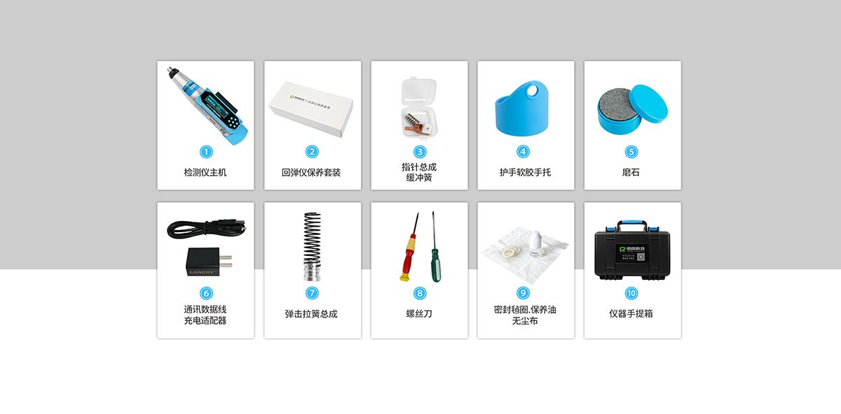 符合标准 中华人民共和国国家标准《回弹仪》GB/T 9138-2015 中华人民共和国国家计量检定规程《回弹仪》JJG 817-2011 中华人民共和国行业标准《回弹法检测混凝土抗压强度技术规程》JGJ/T 23-2011 应用领域 依据国家行业标准可用于10~60MPa范围内的普通混凝土抗压强度检测 依据相关地方标准可用于10~80MPa范围内的普通混凝土抗压强度检测 产品配置