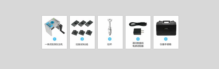 符合标准 JGJ110-2017《建筑工程饰面砖粘接强度检验标准》 JGJ126-2015《外墙饰面砖工程施工及验收规程》 JGJ144-2019《外墙外保温工程技术规程》 JG158-2013《胶粉聚苯颗粒外墙外保温系统》 JG149-2015《膨胀聚苯板薄抹灰外墙外保温系统》 GB/T 23445-2009《聚合物数水泥防水涂料》 GB 50411-2019《建筑节能工程施工质量验收标准》 应用领域 适用于饰面砖,马赛克,各种板材,油漆,涂料及各种外墙建筑材料粘结强度的检测,不仅可测外墙饰面砖的粘结强度,还可检测外墙保温材料(EPS板,SPS板),油漆和涂料的粘结强度 产品配置