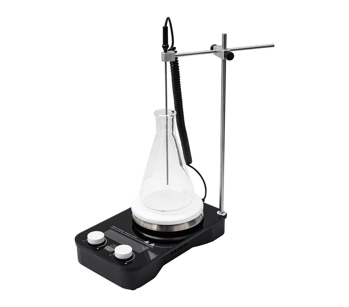 产品特点 1.钢化玻璃面板,大屏显示,参数一目了然,外观美观大方; 2.加热台面采用纳米陶瓷工艺,耐腐蚀耐热冲击,表面容易清洁,安全可靠,美观耐用; 3.搅拌速度范围广,适用于多种实验应用; 4.数字显示安全温度设定值,超过介质设定温度 50℃自动切断电源; 5.关机后,屏幕持续显示加热台实时温度,防止误触。 描述 HS-350C 加热型磁力搅拌器采用不锈钢纳米陶瓷台面加热技术,耐腐蚀耐热冲击,表面最高温度可达到 340℃。 技术参数