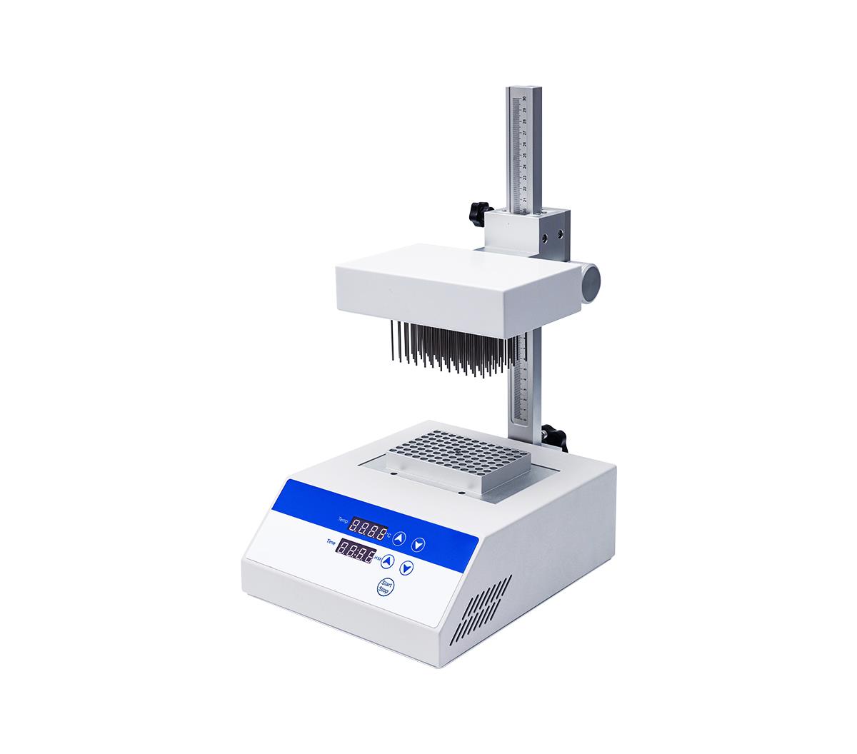 产品特点 1.气针相互独立,不会引起交叉感染; 2.每个气针和模块孔位垂直对应,调整直观、方便; 3.系统控温精度高、控温范围广、温度校准方便; 4.升降机构有安全保护装置,使用安全; 5.升降机构带刻度显示,定位准确明了。 描述 DC150-1A 96 孔氮吹仪是采用 PID 控温金属浴和氮气吹扫装置结合而成的多通道样品浓缩装置,其工作原理是将氮气快速、连续、可控地吹到加热样品表面,根据被浓缩样品的溶剂蒸发速度和沸点,设定加热温度,实现批量样品的快速浓缩。本仪器采用铝加热模块,其传热性好、传热均匀,这利于快速加热和快速温控。将氮气吹到样品表面,实现液体样品的无氧浓度。 技术参数