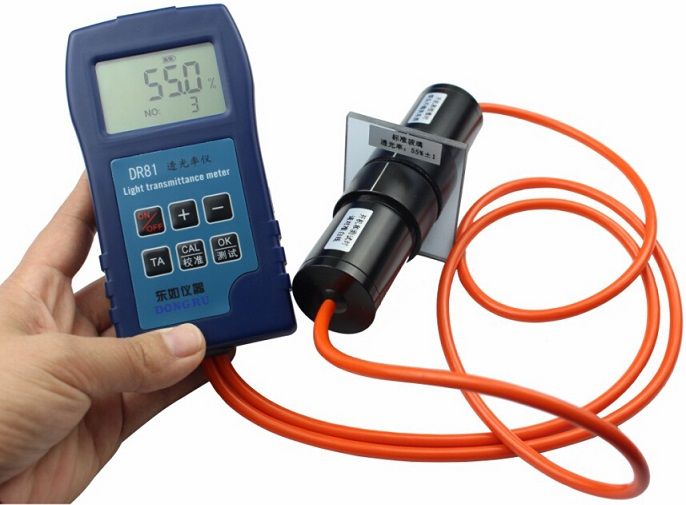 产品名称:DR81透光率仪 DR81透光率仪(又名透光仪,透光率计,透光率测试仪,透光率检测仪) 一、透光率仪介绍 透过物体的光通量与入射物体光通量的比值为该物体的透光率,用百分数表示。主要用于测量各种玻璃、塑料、薄膜和透明或半透明材料的可见光透射率,本仪器根据光学原理,采用进口元件制造而成,其操作简单,测量准确,体积小,携带方便,特别适应现场测量。 二、应用范围 汽车制造与检测、玻璃制品、航空航天等行业的现场测量。 保护膜、PC、亚克力等塑料制品的透光率测量。 其它透明或半透明材料透光率测量。 (注意:印花、磨砂面、乳白色的材料不适用本机测量) 三、仪器特点 · 分体式透光率仪,操作简单,测量速度快,灵敏度好,测量精度高 · 具有两种测试模式:单次测(SINGLE)和连续(CONT INUE)测量模式 · 设有四个统计功能:最大值(MAX)、最小值(MIN)、平均值(MEA)、测量次数 · 大容量存储,可存贮800个测量数据 · 连接电脑进行通信,读出存贮数据进行保存或打印(适用带通信口主机) · 仪器开机自动校准和手动校准 · 操作过程有蜂鸣声标示(单次测量方式) · 大液晶带背光,低电压指示 · 手动/自动关机功能 四、技术参数 A、测量范围:0.0—99.9% B、测量数量:%光束透射 C、测量物体最厚不能超过:18mm D、测量物体面积不能小于:10mm*10mm E、测量精度:≤2% F、分辨率:0.1% G、主机外形尺寸:130mm*70mm*24mm H、探头外形尺寸:Φ38mm*118mm I、电源:三节(7号)碱性电池 J、使用温度:0℃-40℃ K、相对湿度不超过85% 五、出厂清单